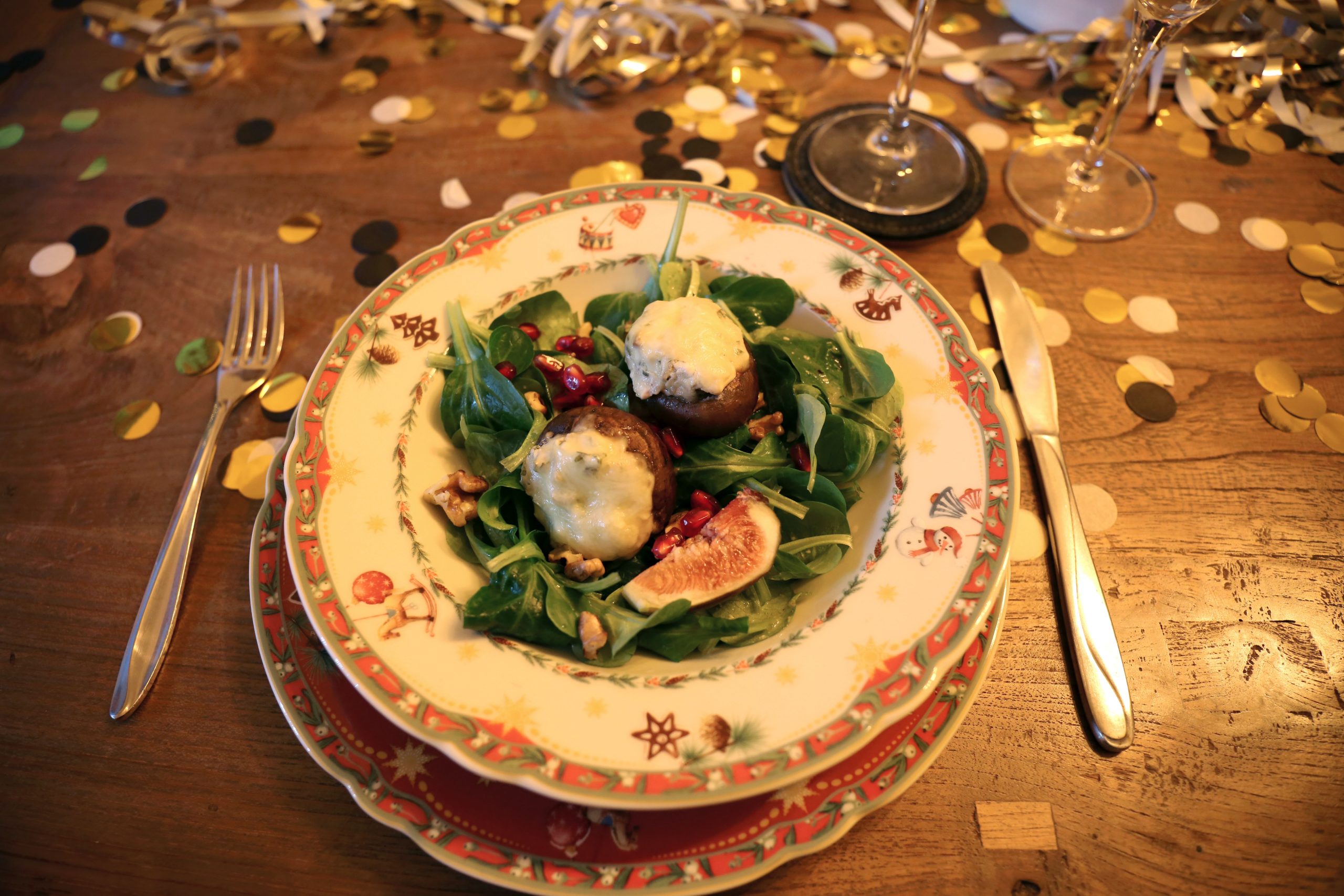 - Vorspeise: winterlicher Feldsalat mit gratinierten Pilzen und Granatapfel