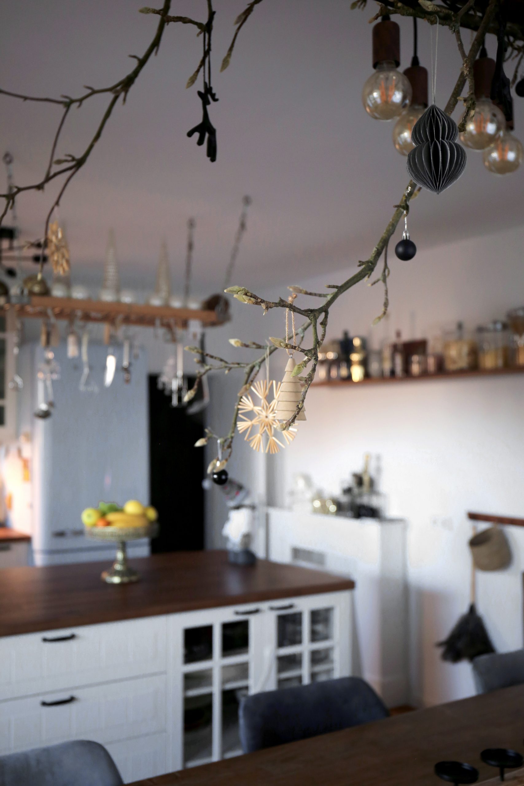 Auch für den Baum haben wir uns schwarze Kugeln gekauft in Groß und Klein, in matt und glänzend. Doch nur mit den Kugeln erschien uns der Baum als etwas langweilig, irgendetwas stimmt nicht und fühlte sich nicht richtig an. Also fügten wir noch silberne Eiszapfen hinzu – Das war es! Jetzt passte es!