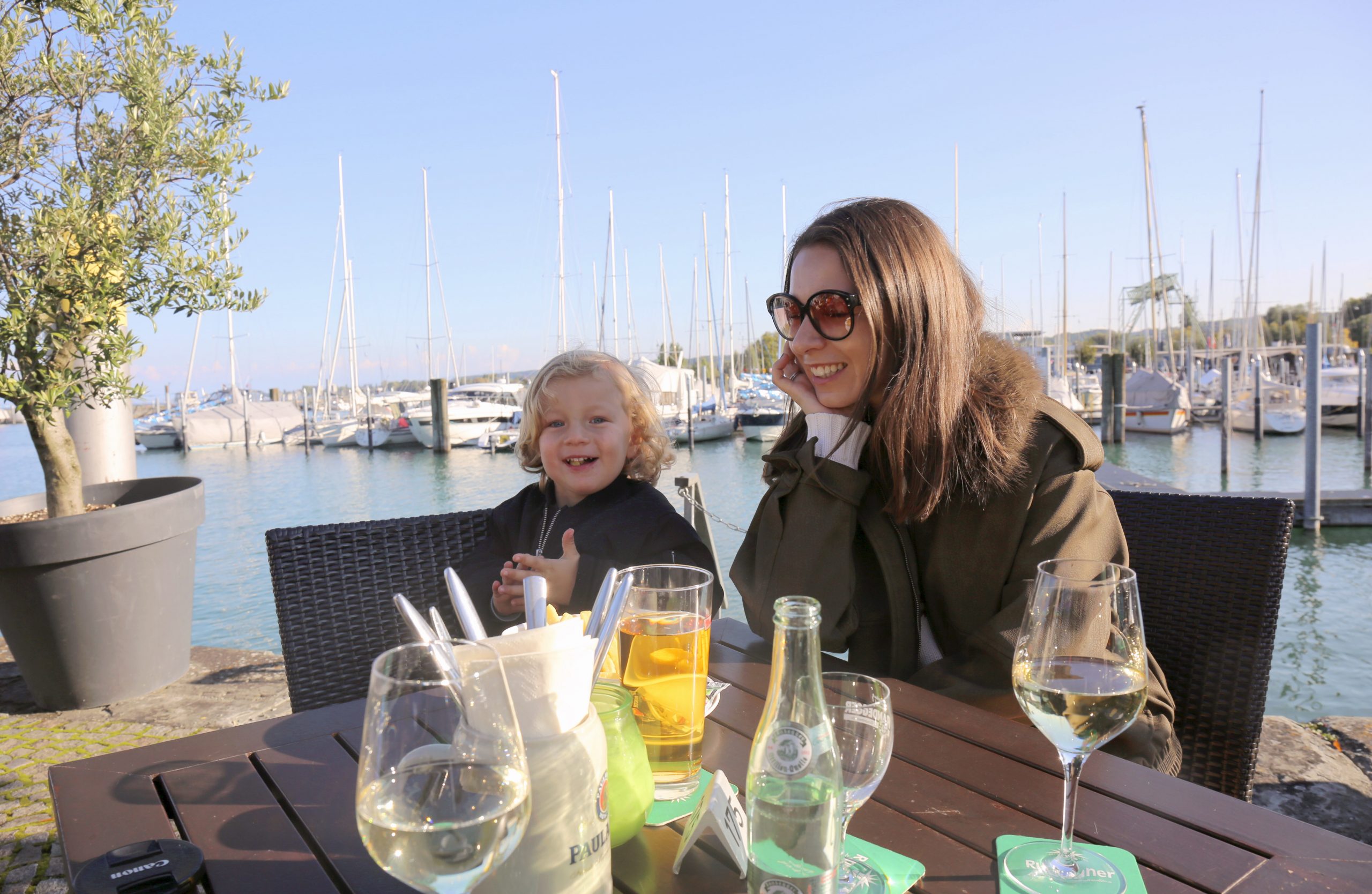 Als wir in Konstanz ankamen, fühlte sich alles nach Sommerzeit an. Die Sonne strahlte so herrlich. Die vielen Boote am Hafen wiegten sich so beruhigend auf dem See. Es war nicht ganz so viel los – herrlich! So mag ich den Bodensee! Bei einem Spaziergang entlang der Promenade war unser Sohn auf die vielen vielen Boote fixiert. Er war gänzlich aus dem Häuschen, wenn eine Fähre an uns vorbeibrauste. Also entschlossen wir uns für einen Mittagssnack direkt am Hafen. Moritz hatte uns fast gar nicht beachtet, die See und die Umgebung war viel interessanter. So konnten wir gemütlich unseren Mittag am See bei einem leckeren Glas Riesling genießen. Der Wein schmeckte bei der Kulisse vorzüglich und selbst die gewöhnlichen Pommes hatten das gewisse Extra.